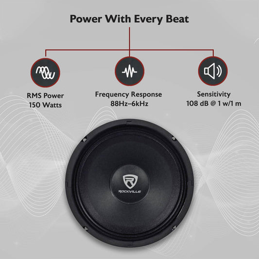 RM88PRO Mid-Range Competition Car Speaker, 8”, 300W, 8 Ohm, Kevlar Cone, Open Basket, CEA Compliant, 100Oz Magnet, Perfect for Car Audio