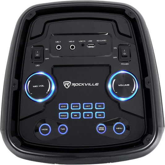 Rock Party 8 Dual 8" 500W Battery Powered Bluetooth Speaker, LED Lights, 2 Mic Inputs, Mega Bass, TWS Pairing, for Parties, Karaoke, and Home Entertainment
